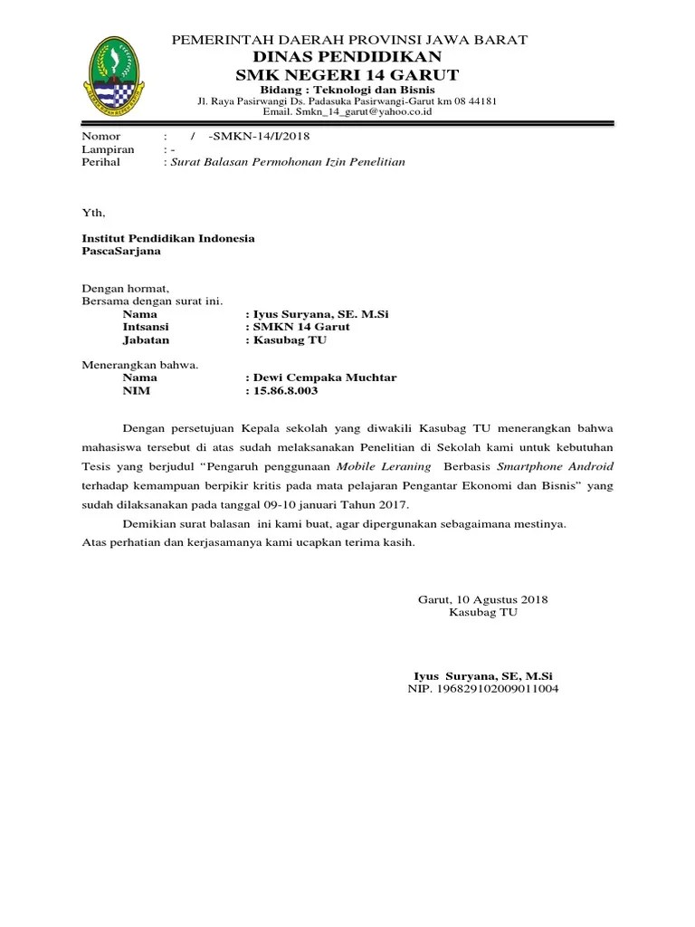 Contoh surat izin melakukan penelitian di sekolah berbagi ilmu.